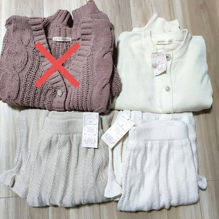 시착만 한 상품입니다 ◎ 간편 포장, 컴팩트 발송이 됩니다. 펄 버튼 튤 슬리브 가디건 (아이보리) 밑단 프릴 니트 스커트 (핑크 베이지, 아이보리)