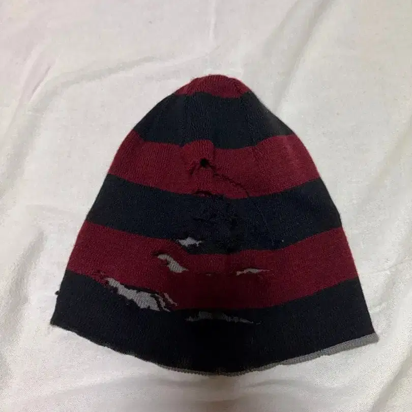 빨간색과 블랙의 보더 비니입니다. 칼집 모양의 리메이크가 되어 있습니다. 그런지 패션을 좋아하는 분께 추천합니다.