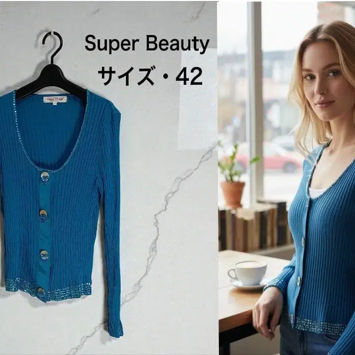 • 컨디션 최상 슈퍼뷰티 리브 니트 가디건 사이즈 40 블랙 비즈