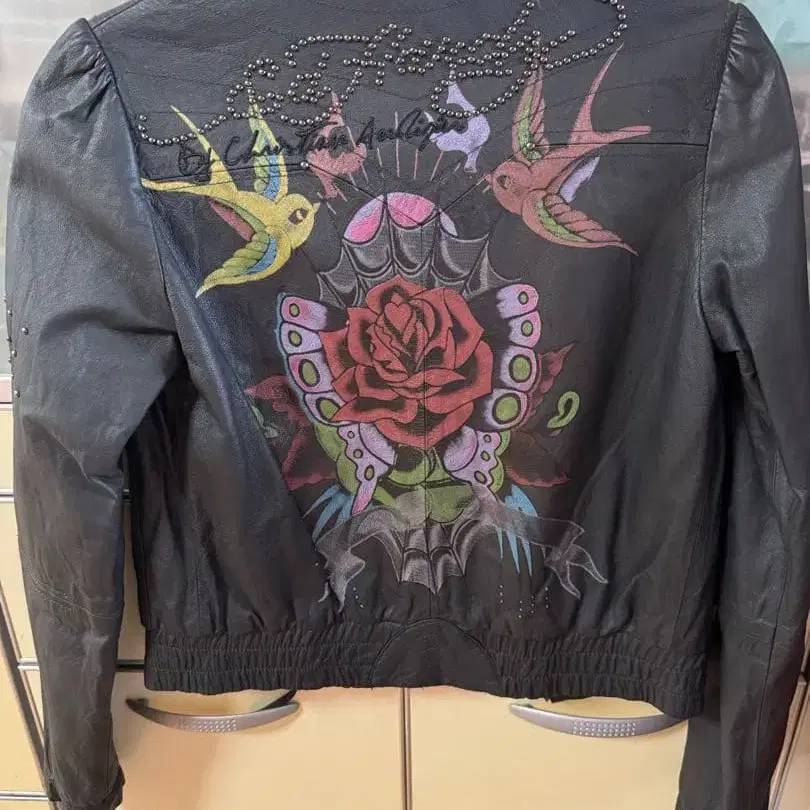 자수와 스톤 장식이 들어간 Ed Hardy 블랙 가죽 자켓, XS 사이즈. - 브랜드: Ed Hardy - 디자인: 자수와 스톤 장식이 있는 버터플라이와 장미 디자인 - 사이즈: XS - 소재: 가죽 - 색상: 블랙 방문해 주셔서 감사합니다. 사이즈 - S