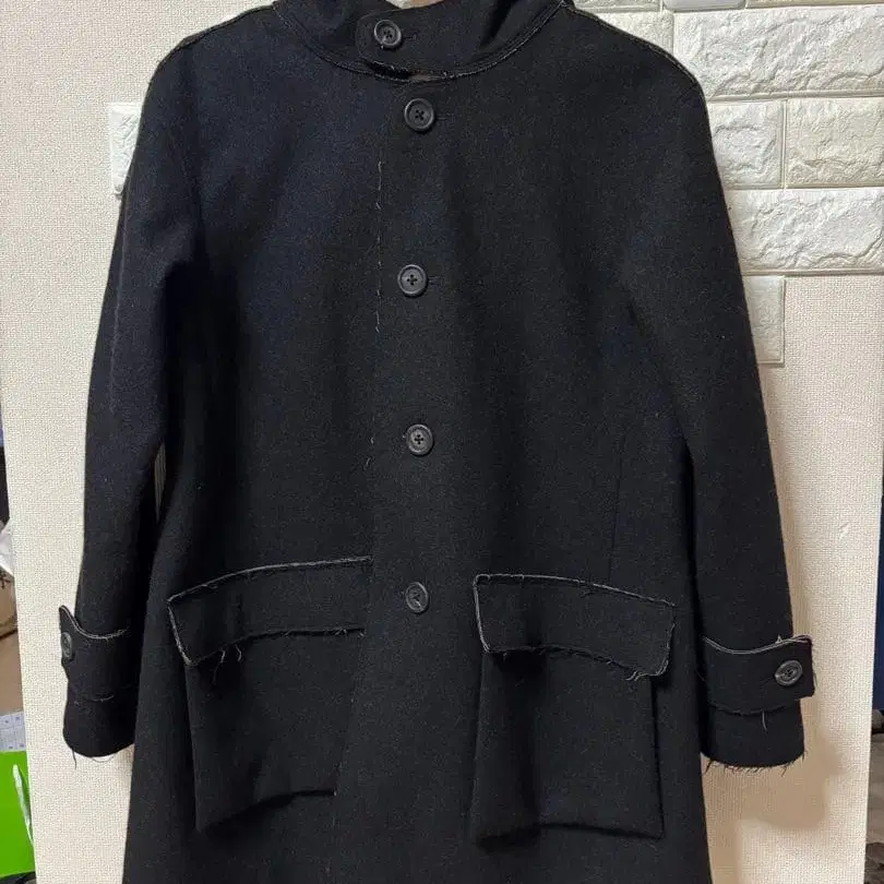 자동 번역되었어요. 원문보기울 소재의 블랙 피코트, 버튼과 포켓 부착.