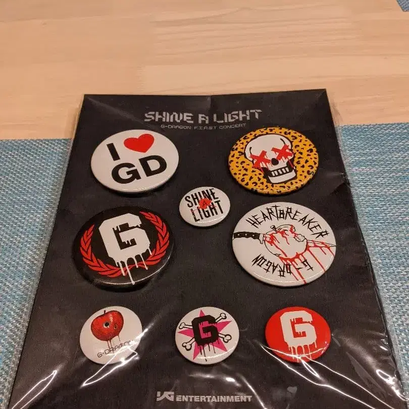 2009년 G-DRAGON 솔로 퍼스트 콘서트 SHINE A LIGHT 공식 굿즈 캔뱃지 세트 미개봉품입니다. 잘 보이지 않으실 수 있으나, 패키지 상자에 찍힘이 있습니다. 초기 불량이나 오래된 제품이므로 노후화가 있을 수 있습니다. 이 점을 이해하신 후 구매 부탁드립니다. ※ 즉시 구매 가능 아이템/종류 - 캔뱃지