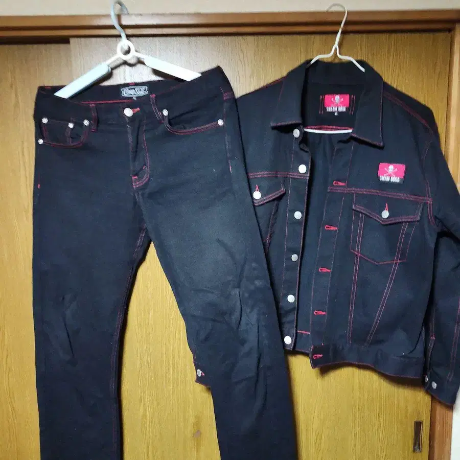 Cream soda의 빨간색 스티치 셋업입니다. 약간의 사용감은 있지만 상태는 나쁘지 않다고 생각합니다. 이 사이즈의 셋업은 좀처럼 나오지 않으니 찾고 계셨던 분은 꼭 부탁드립니다 ❕ 가격 인하, 구매 의사가 없는 좋아요는 삼가주세요!