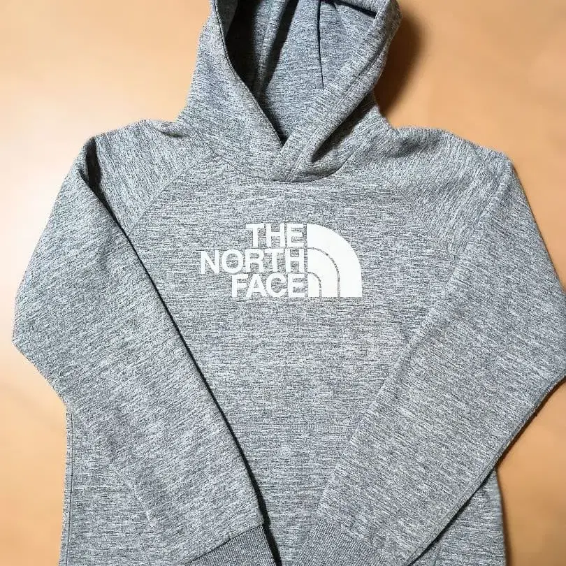 그레이 색상의 THE NORTH FACE 후디, M 사이즈, 로고 디자인.
