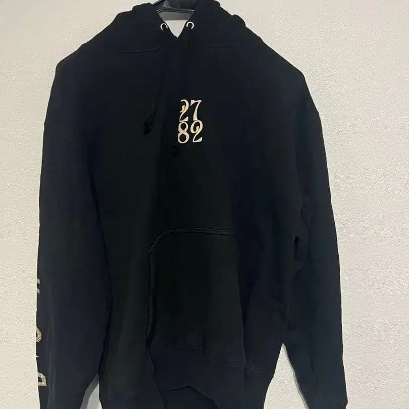 카드놀이 디자인의 그래픽이 특징인 블랙 후드티.