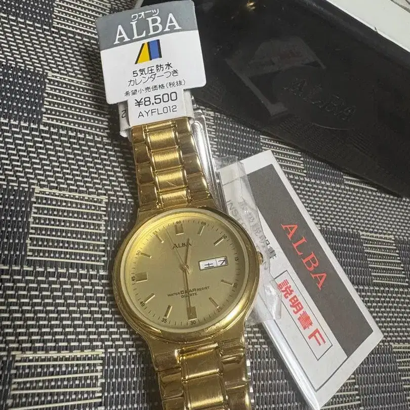 ALBA 골드 워치 남성용 손목시계입니다. 미사용 상태로 보관하고 있었습니다. 비닐도 뜯지 않은 상태입니다. 배터리는 방전되었습니다. 케이스도 함께 드립니다. 장기 자택 보관에 이해해 주시는 분은 검토 부탁드립니다. 잘 부탁드립니다!