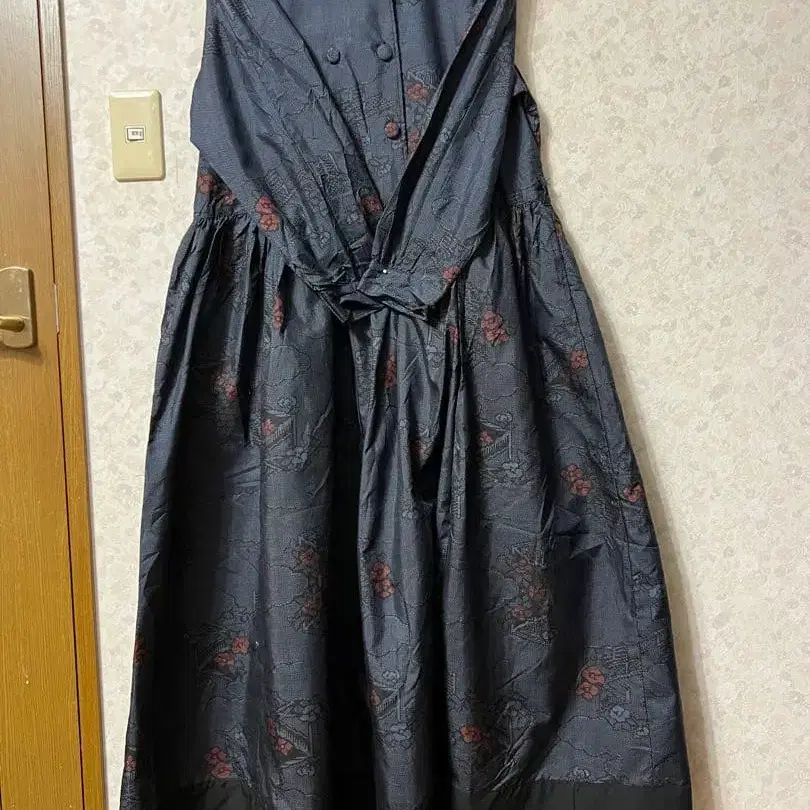 기모노 리메이크 원피스 오시마 명주 순수 실크 포켓 부착 벨트 부착