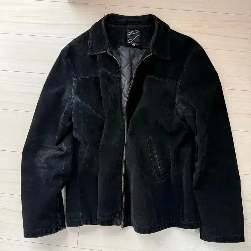 블랙 소가죽 스웨이드 2XL 집업 자켓