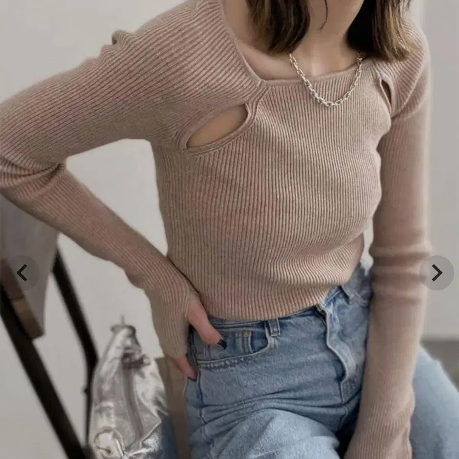 살짝 피부가 보이는 트렌디한 컷오프 디자인이 악센트인 니트입니다. 건강한 시스루룩을 연출할 수 있습니다 ♡