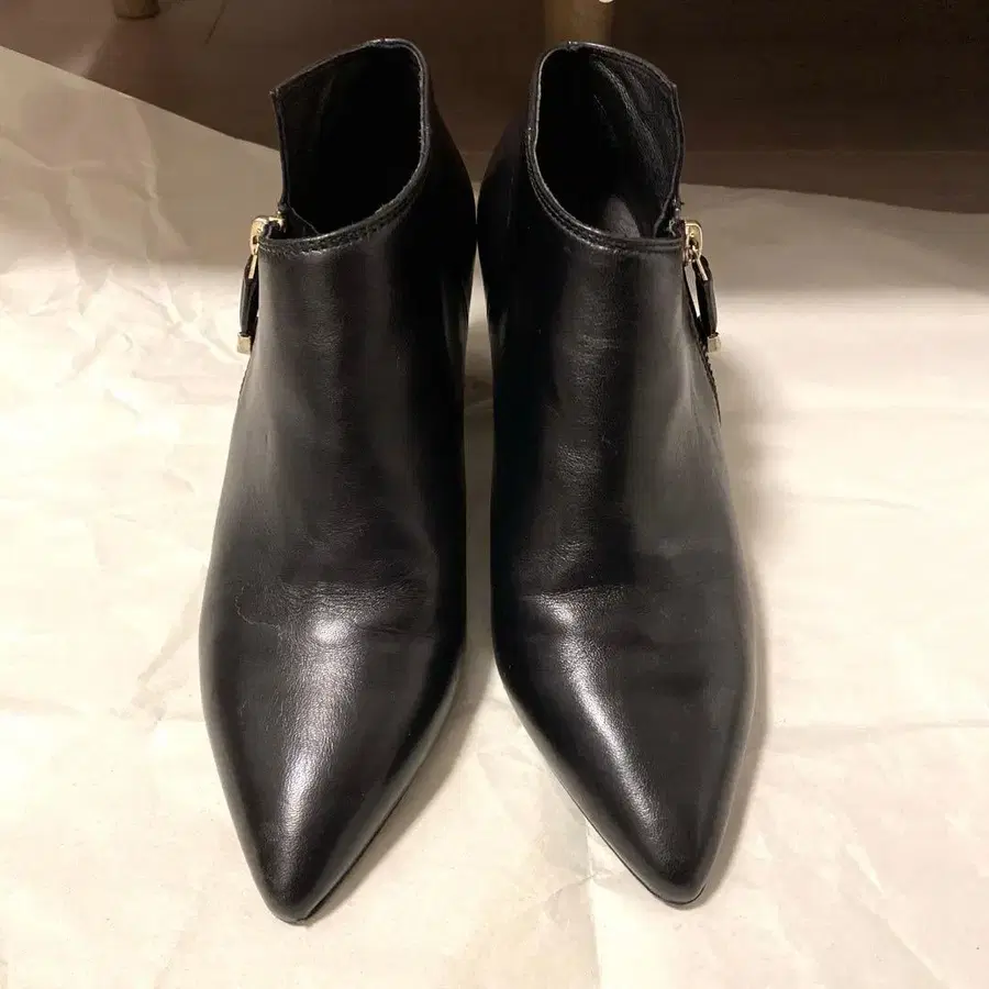 와이드 힐 사이드 지퍼 골드 금장 장식