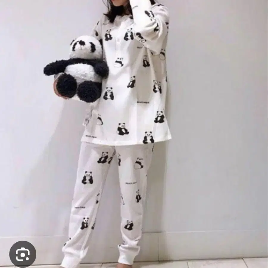 팬더 무늬 리브 와플 소재 룸웨어 세트 제라피케
