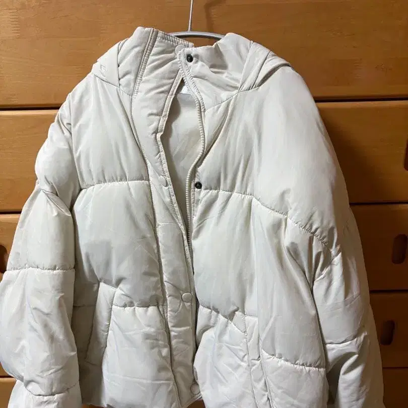 아이보리 메탈릭 후드 부착 패딩 자켓