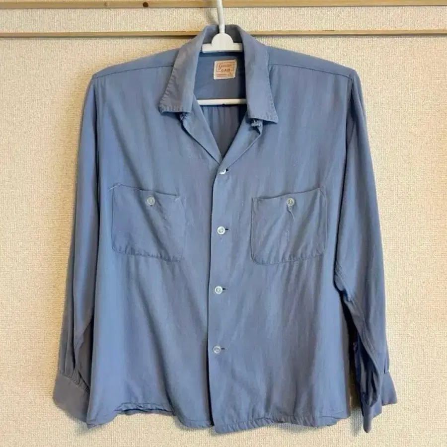 [ 50s ] 레이온 개버딘 box shirt 15 1/2 스카이블루