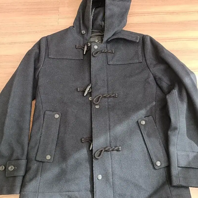 15년 전 상품이지만 깔끔한 디자인입니다. 모양이 크게 망가지지는 않았습니다. 다크 그레이 색상의 후드 부착 더플 코트이며, 울 혼방 소재로 보온성이 뛰어난 아이템입니다. - 색상: 다크 그레이 - 디자인: 후드 부착 더플 코트 - 소재: 울 혼방 - 안감: 부드러운 합성섬유 - 클로징: 토글 버튼 - 포켓: 앞면에 2개의 포켓 방문해 주셔서 감사합니다.
