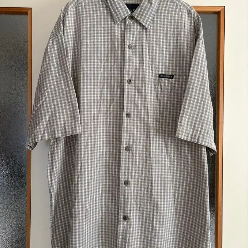체크 무늬 반팔 셔츠, 사이즈 XL. - 브랜드: NAUTICA JEANS - 사이즈: XL - 디자인: 체크 무늬 - 색상: 그레이 계열 신장 158cm, 보통 체형으로 오버 사이즈입니다.