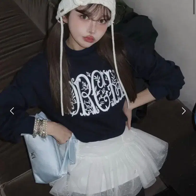 택 포함 미사용 새상품 LILY BROWN 펄 비쥬 맨투맨 블랙
