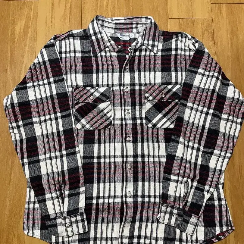 자동 번역되었어요. 원문보기FIVE BROTHER 체크 무늬 플란넬 셔츠, 버튼이 달린 플랩 포켓이 특징입니다.