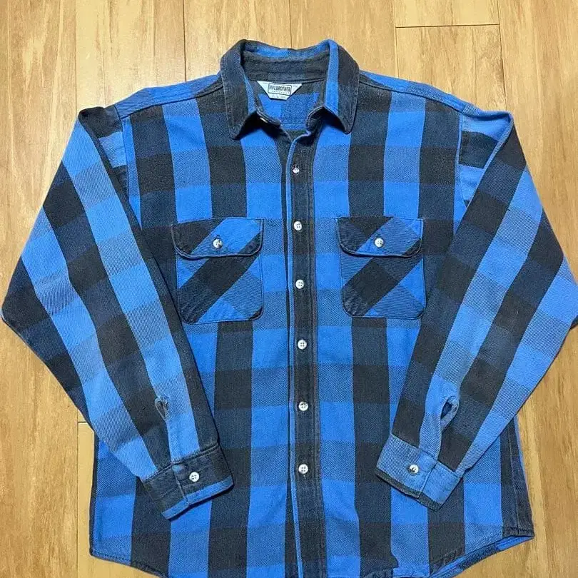파랑과 블랙의 체크 무늬 플란넬 셔츠, 프론트 포켓 부착으로 스타일리시합니다. 특별히 눈에 띄는 데미지는 없다고 생각하지만, 어디까지나 빈티지 제품이므로 사진으로 확인하신 후 구매 부탁드립니다. - 브랜드: FIVE BROTHER - 색상: 파랑과 블랙 체크 - 사이즈: 16-16.5 - 스타일: 플란넬 셔츠 - 포켓: 프론트 포켓 2개 방문해 주셔서 감사합니다. 사이즈 - L