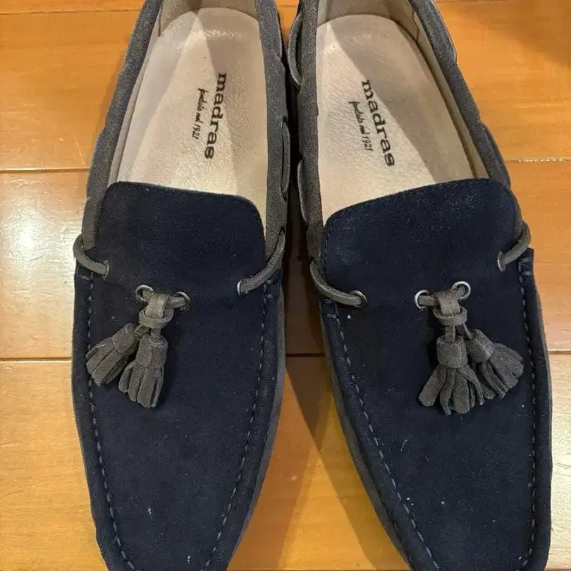 네이비 스웨이드 소재, 태슬 로퍼, 러버 솔로 쾌적한 착용감. - 브랜드: madras - 색상: 네이비 - 스타일: 태슬 로퍼 - 소재: 스웨이드 - 밑창 타입: 러버 솔 - 사이즈: 26 방문해 주셔서 감사합니다.