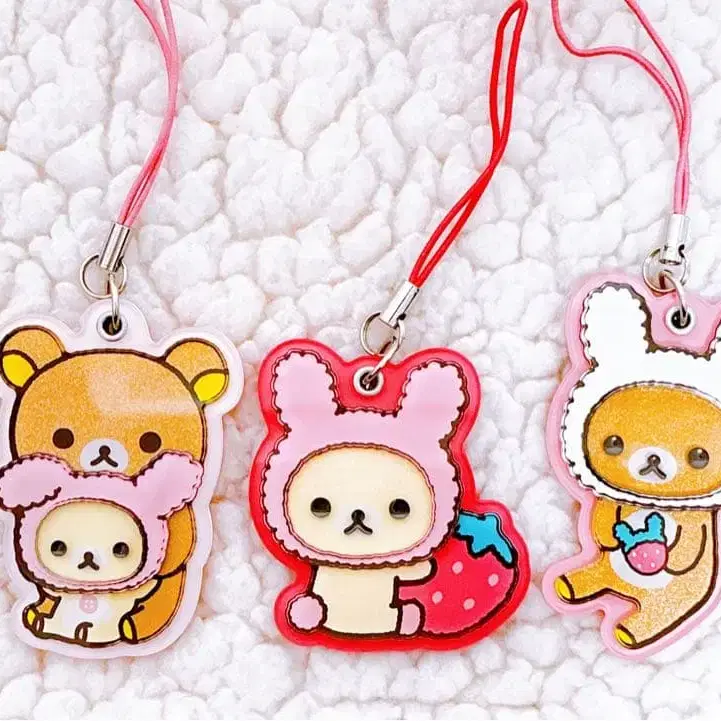 [ 새상품 미사용 ] 리락쿠마 코리락쿠마 아크릴 스트랩 3개 세트 즉시 구매 가능, 가격 인하, 낱개 판매 불가 레어템입니다! 부디 서둘러 get 하세요 ☺︎ 아이템/종류 - 스트랩