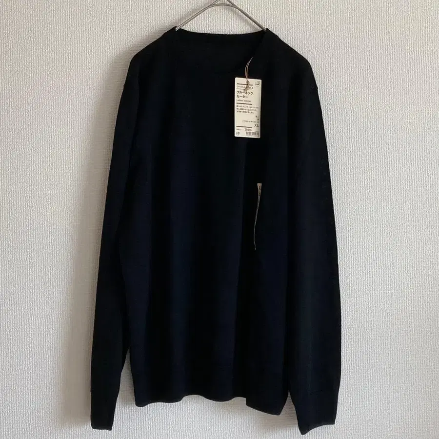 [ 새상품 ] 무인양품 울 실크 워셔블 크루넥 스웨터, 색상은 블랙입니다. 사이즈는 XL입니다. 새상품 미사용입니다. #무인양품 #무인 #MUJI