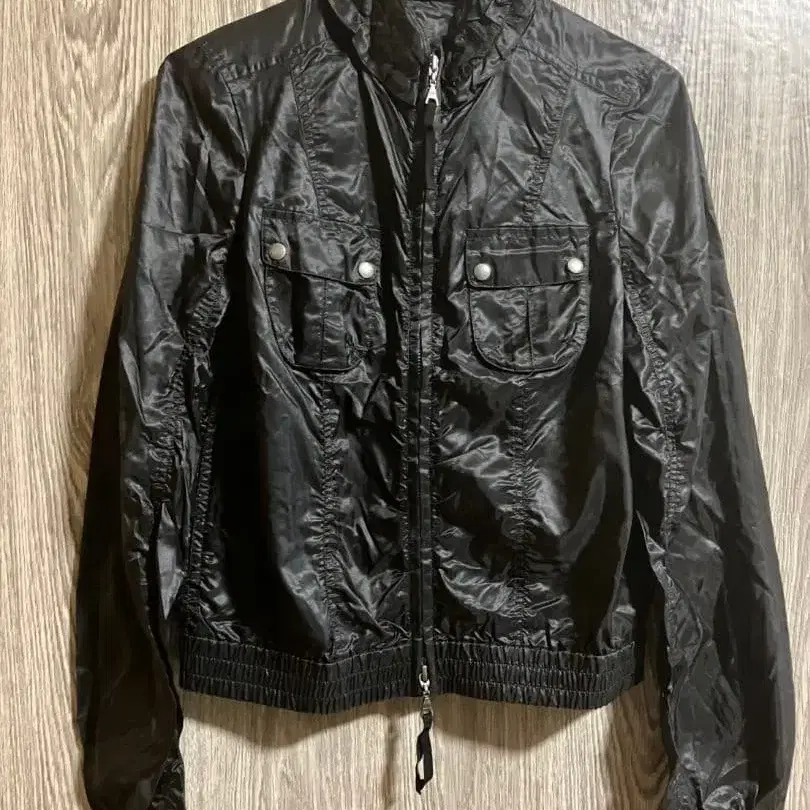 자동 번역되었어요. 원문보기지퍼가 달린 경량 블랙 자켓, 포켓 2개 포함.