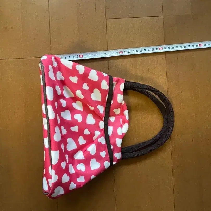 핑크와 화이트의 하트 무늬가 특징인 토트백. - 색상: 핑크와 화이트 하트 무늬 - 핸들 색상: 다크 브라운 - 디자인: 하트 무늬 토트백 - 사이즈: 사진과 같습니다. 사진이 전부입니다. 확인해 주세요. 방문해 주셔서 감사합니다.
