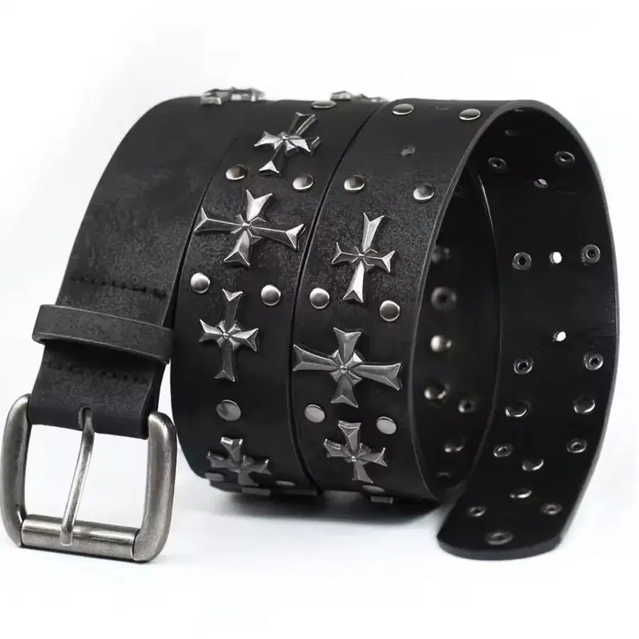 가죽 벨트 크로스 스터드 펑크 스트릿 y2k