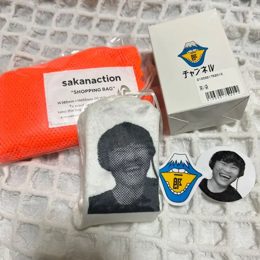 사카낙션의 쇼핑백과 야마구치 이치로 씨의 웃음 주머니 세트입니다.