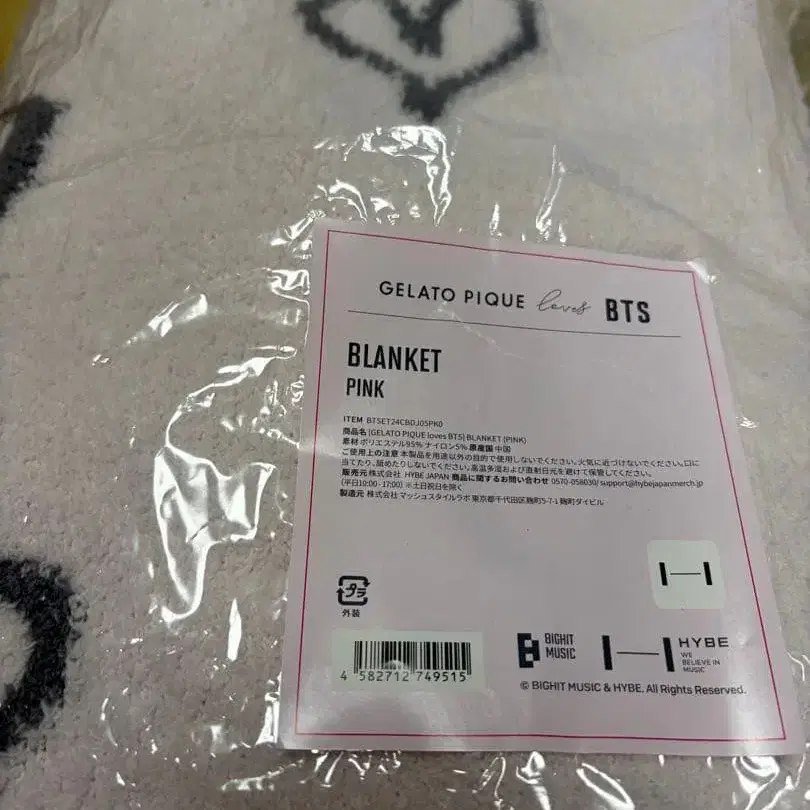 GELATO PIQUE loves BTS 젤라피케 젤라또피케 담요 핑크 미개봉 새상품 사이즈(cm): H70 x W100 ⭐︎ 접어서 발송해 드립니다.