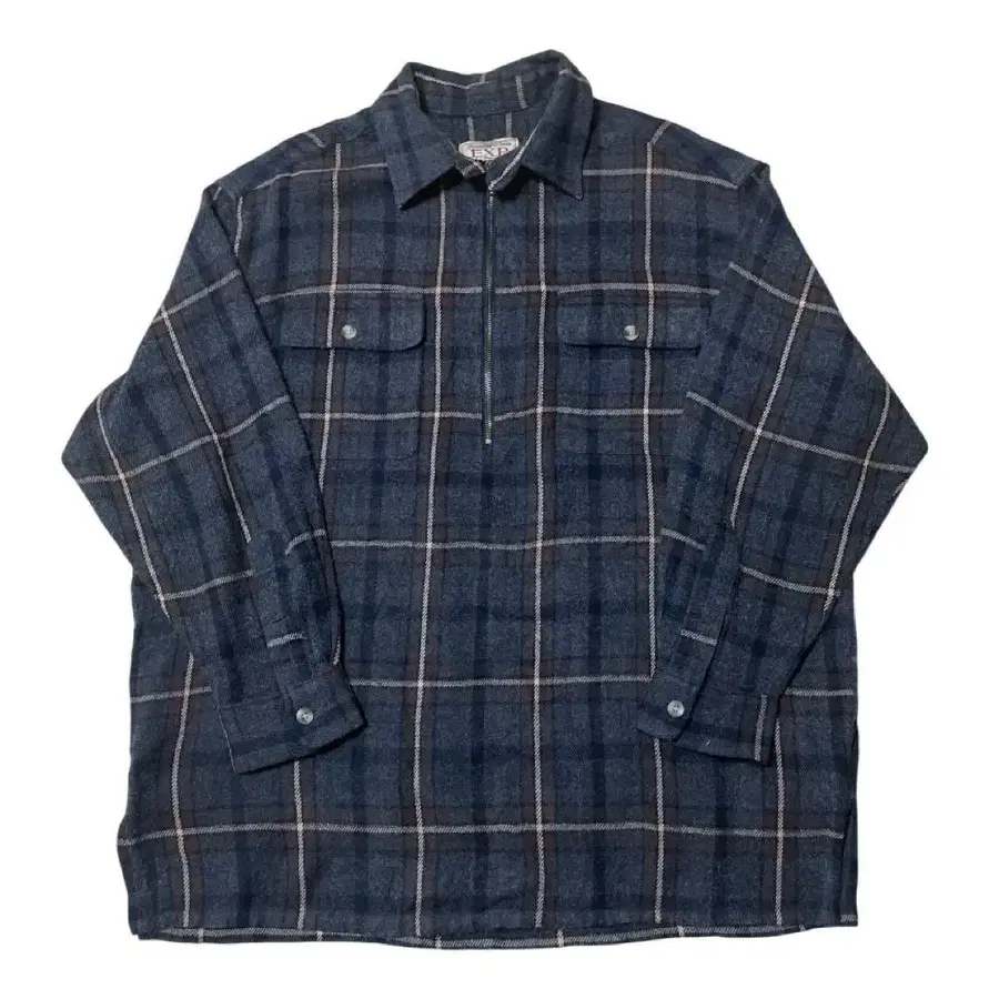 독특한 디자인의 풀오버 울 체크 셔츠입니다.