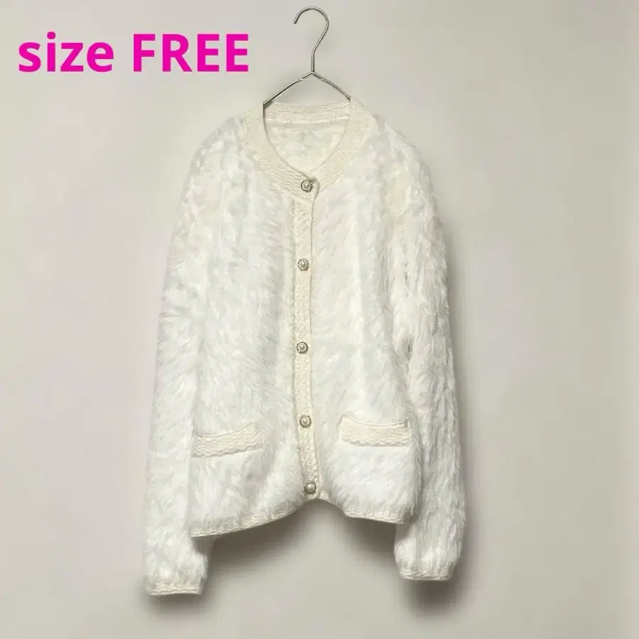 미사용 펄 버튼 샤기 니트 가디건 촉촉하고 포근한 화이트