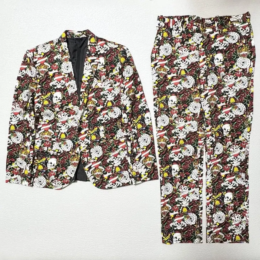 [ 아이템 ] Ed Hardy (에드 하디) 셋업 수트 (자켓 & 슬랙스) 스컬 해골 / 호랑이 타이거 프린트 자수 [ 사이즈 ] ■ 자켓 가슴 너비: 38.5cm 기장: 69.0cm 어깨 너비: 43.0cm 소매 길이: 61.0cm ■ 슬랙스 허리 너비: 40.5cm 밑위: 30.0cm 인심: 66.0cm 총길이: 100.5cm 밑단 폭: 20.0cm 힙 너비: 46.5cm 허벅지 너비: 23.0cm ※ 개인 평평하게 놓았을 때 치수 측정입니다. 측정 위치 등에 따라 약간의 오차가 있을 수 있습니다. 어디까지나 참고용으로 봐주세요. [ 사이즈가 맞지 않았다 ] 등 고객님의 사정으로 인한 반품은 정중히 사양합니다. [ 설명 ] 타투 아티스트의 거장 돈 에드 하디의 디자인을 계승한 브랜드, Ed Hardy의 매우 레어한 셋업 수트입니다. 브랜드를 상징하는 스컬과 타이거가 대담하게 디자인되어, 유일무이한 존재감을 뽐냅니다. 안감과 세부 디테일까지 신경 쓴 완성도로, 파티 장면이나 무대 의상, 스트릿에서의 개성 있는 코디에 최적인 한 벌입니다. [ 상태 ] 눈에 띄는 상처나 얼룩은 발견되지 않았습니다. 중고품으로서는 양호한 컨디션입니다. 개인 검품이므로, 약간의 주름이나 약간의 얼룩은 양해 부탁드립니다. 사진을 확인하신 후, 납득하신 후에 구매 부탁드립니다. [ 개요 ] 브랜드: Ed Hardy / 에드 하디 색상: 블랙 (검정) 디자인: 스컬, 타이거, 일본풍 패턴, 타투 디자인 상품번호: 1024