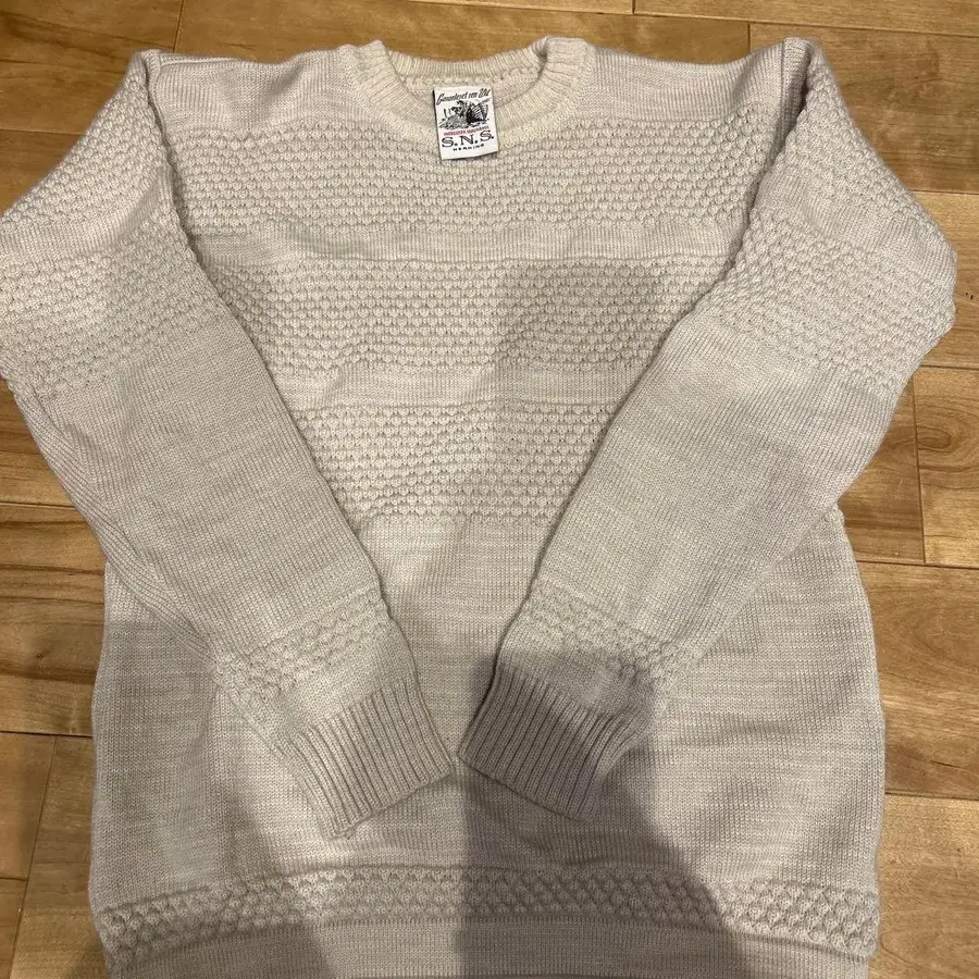 자동 번역되었어요. 원문보기울 혼방 라이트 그레이 스웨터, 독특한 짜임새와 리브 소매가 특징입니다.
