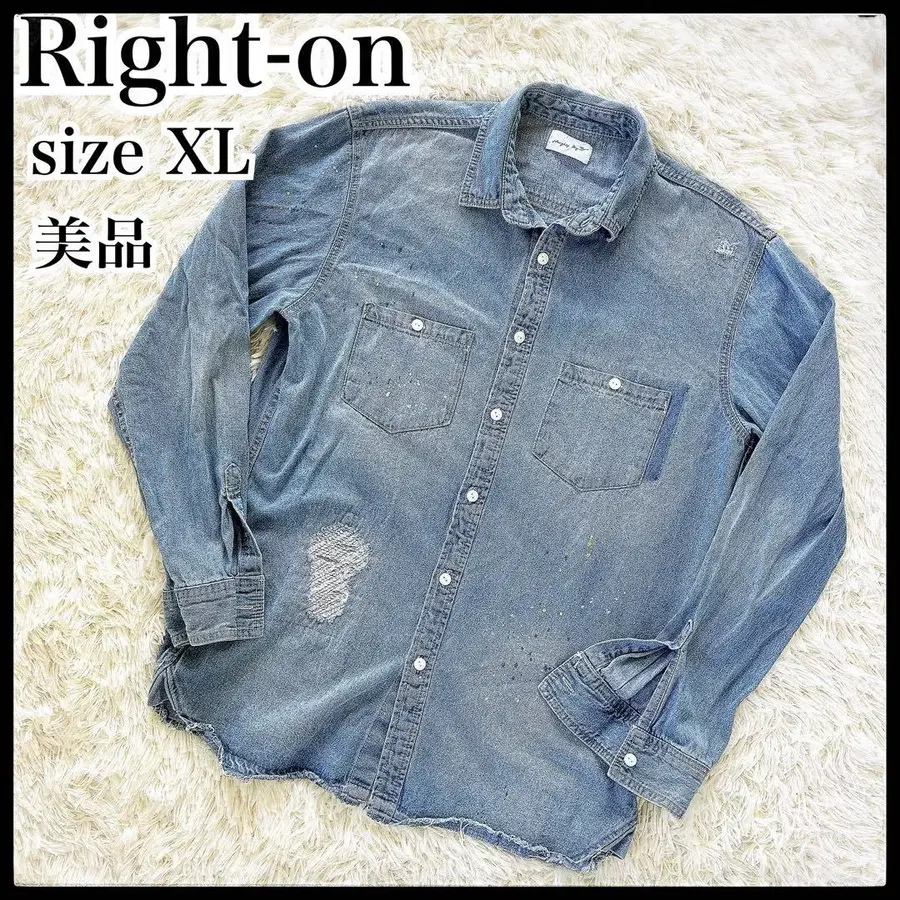 라이트온 데님 셔츠 페인트 데미지 크러쉬 XL 블루 남성용