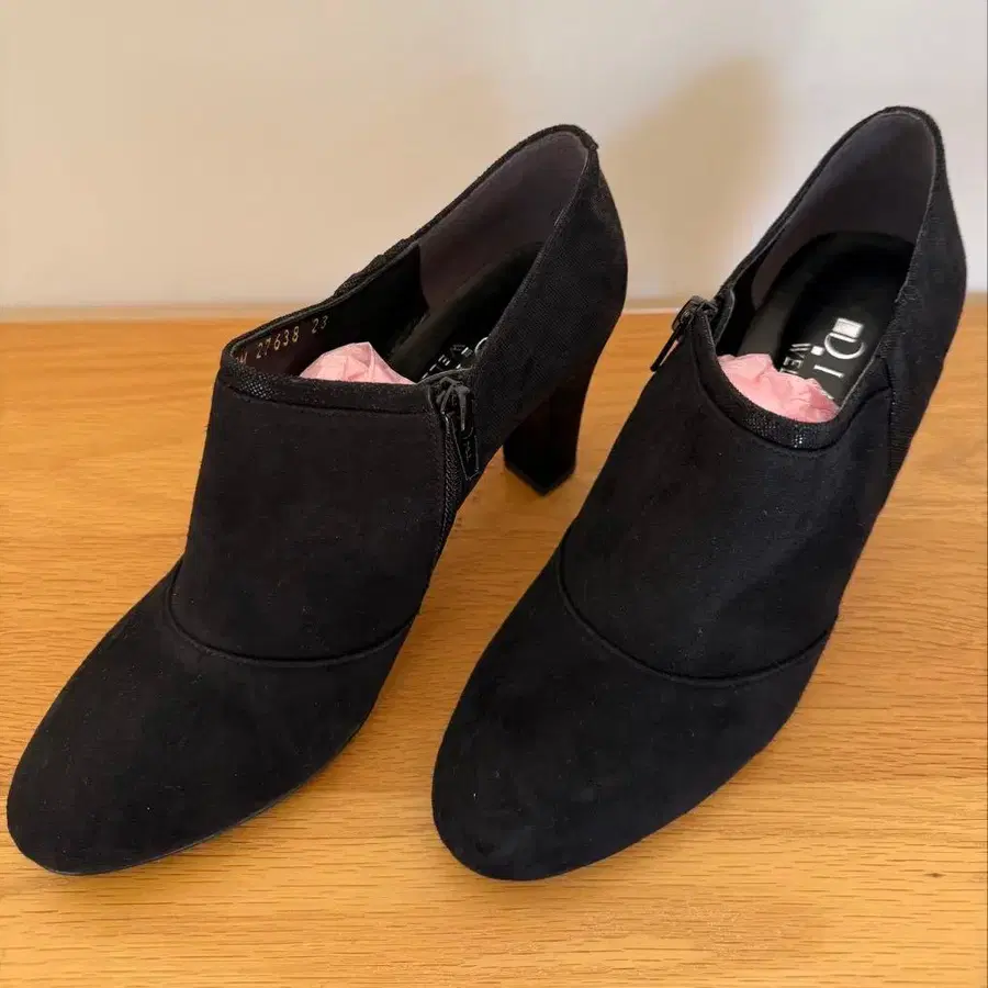 스웨이드 소재의 지퍼 달린 블랙 부티.