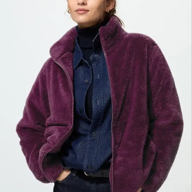 유니클로 퍼 리프 플리스 풀집업 자켓 퍼플