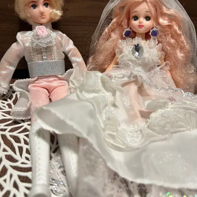 웨딩 드레스를 입은 리카짱과 포멀한 남성 인형 세트.