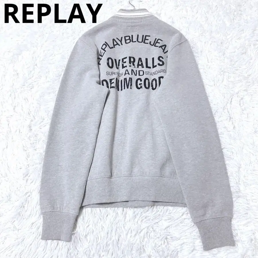 리플레이 맨투맨 바시티 자켓 아우터 상의 속기모 로고 프린트 그레이
