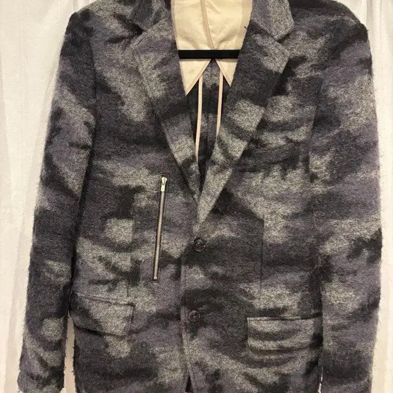 플리스풍 원단의 카모 패턴 테일러드 자켓, 스타일리시한 디자인. - 브랜드: PAZZO - 디자인: 카모 패턴 - 소재: 플리스풍 원단 모 60%, 폴리에스테르 40% - 사이즈: 44 - 포켓: 프론트 포켓 2개, 지퍼 포켓 1개 - 색상: 그레이 계열 - 설립 연도: 1991년 방문해 주셔서 감사합니다.