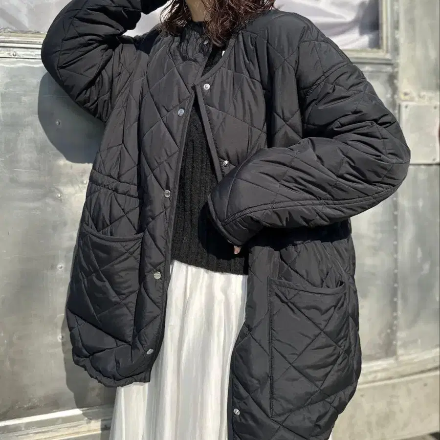 SETUP7 노카라 퀼팅 롱 코트 퀼팅 자켓