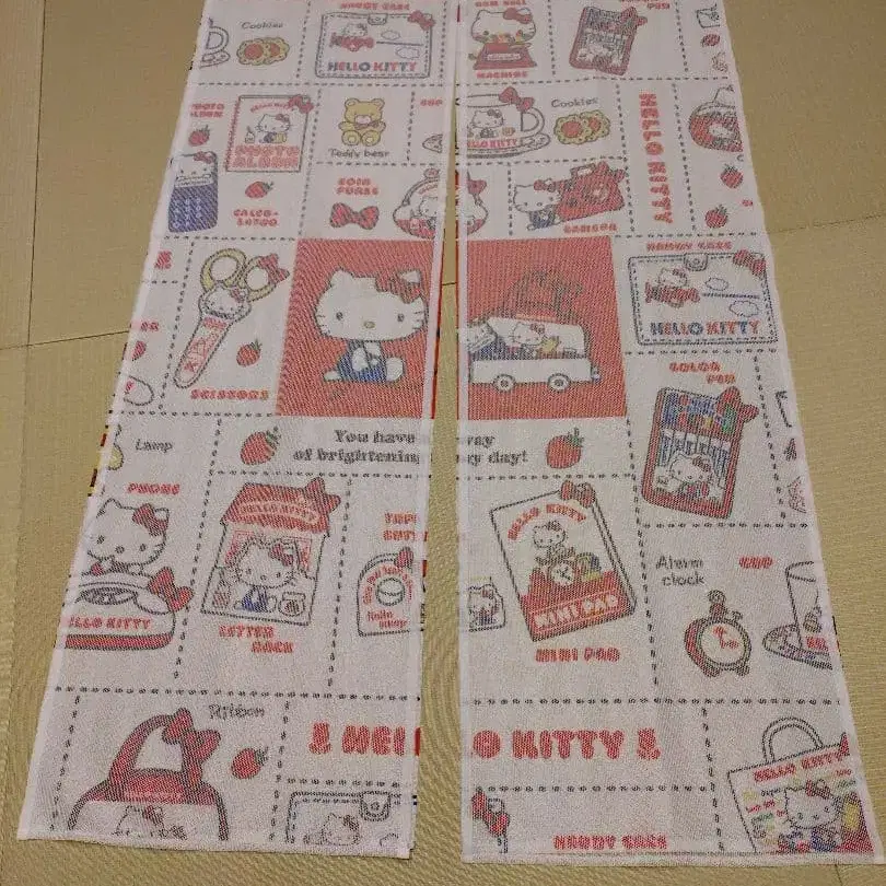 헬로키티의 커튼입니다! 구매 후 장식용으로 사용했습니다. 사이즈는 가로 약 85cm, 세로 약 150cm입니다! 접어서 발송해 드리니 이 점 양해 부탁드립니다. 잘 부탁드립니다!
