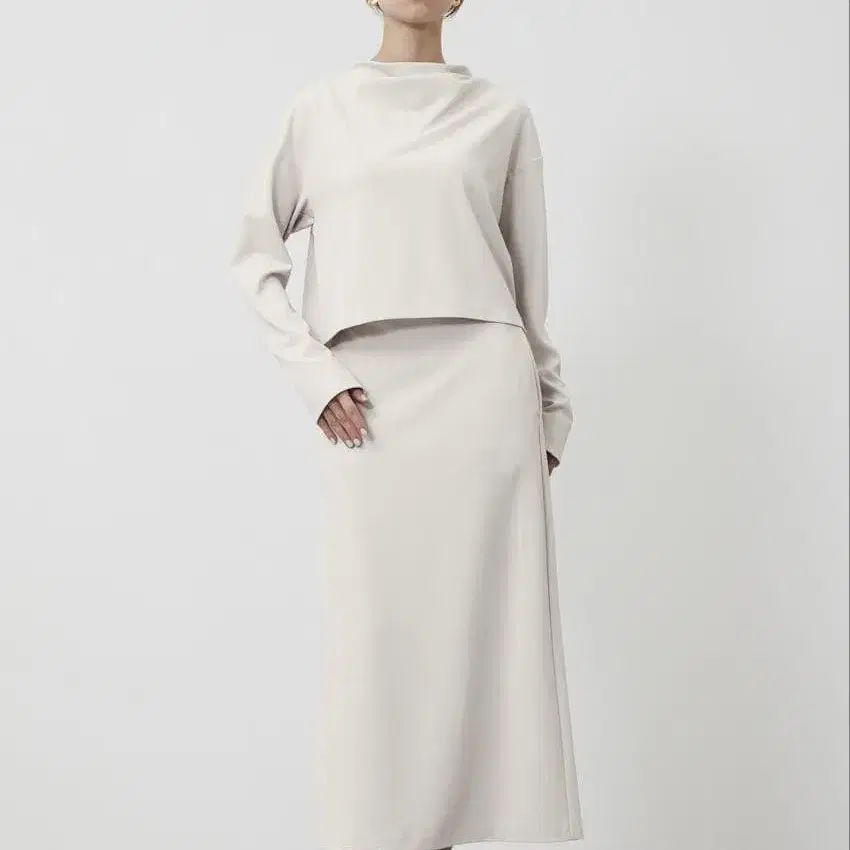 louere 속기모 맨투맨 숏 후드티 + 슬릿 머메이드 스커트