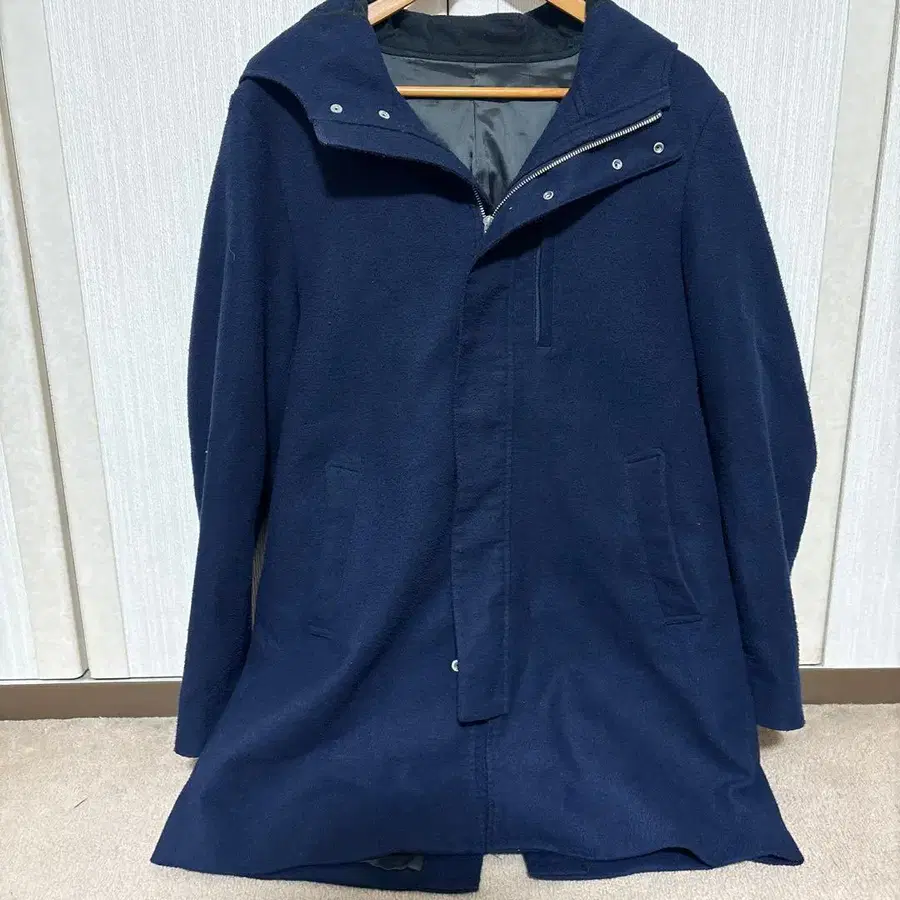 후드 부착 네이비 코트, 부드러운 안감과 사이드 포켓이 있으며, 심플한 디자인이 특징입니다. - 색상: 네이비 - 후드: 후드 부착 - 안감 소재: 부드러운 안감 - 포켓: 사이드 포켓 있음 - 디자인: 심플한 디자인 방문해 주셔서 감사합니다. 사이즈 - XL(LL)