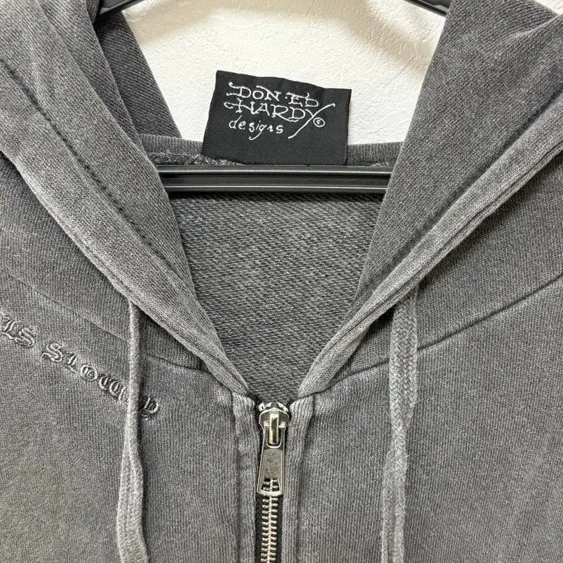 자수와 프린트 디자인이 특징인 그레이 색상의 집업 후디. - 브랜드: ED HARDY - 색상: 그레이 - 디자인: 집업 후디 - 특징: 자수 디자인 - 소매: 프린트 포함 방문해 주셔서 감사합니다.