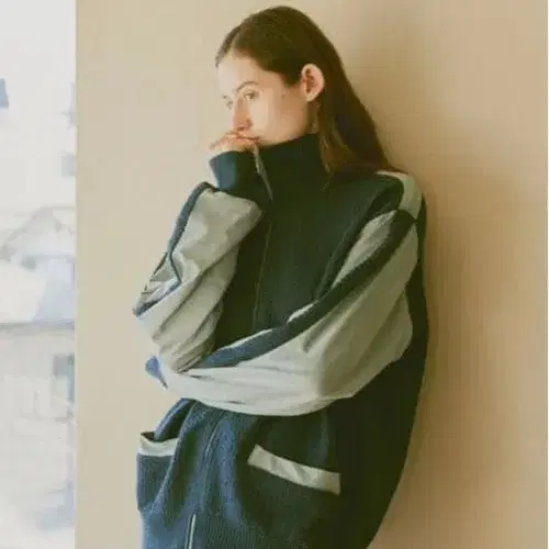 네이비와 그레이 하이넥 니트, 캐주얼한 스트릿 스타일에 최적. - 색상: 네이비와 그레이 콤비네이션 - 디자인: 하이넥, 지퍼 있음, 포켓 있음 - 스타일: 캐주얼, 스트릿 스타일 - 소재: 니트 또는 맨투맨 소재 추정 - 특징: 소매에 다른 소재의 패널 있음 방문해 주셔서 감사합니다. 사이즈 - L