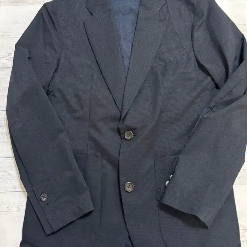 네이비 테일러드 자켓, 버튼에 올풀림 있음. - 색상: 네이비 - 스타일: 테일러드 자켓 - 버튼 상태: 버튼에 약간의 올풀림 있음 - 소매 버튼: 4개의 버튼 포함 방문해 주셔서 감사합니다. 컬러 - 네이비 계열 패턴 - 무지 소재 - 나일론/폴리에스테르 계절 - 봄/여름
