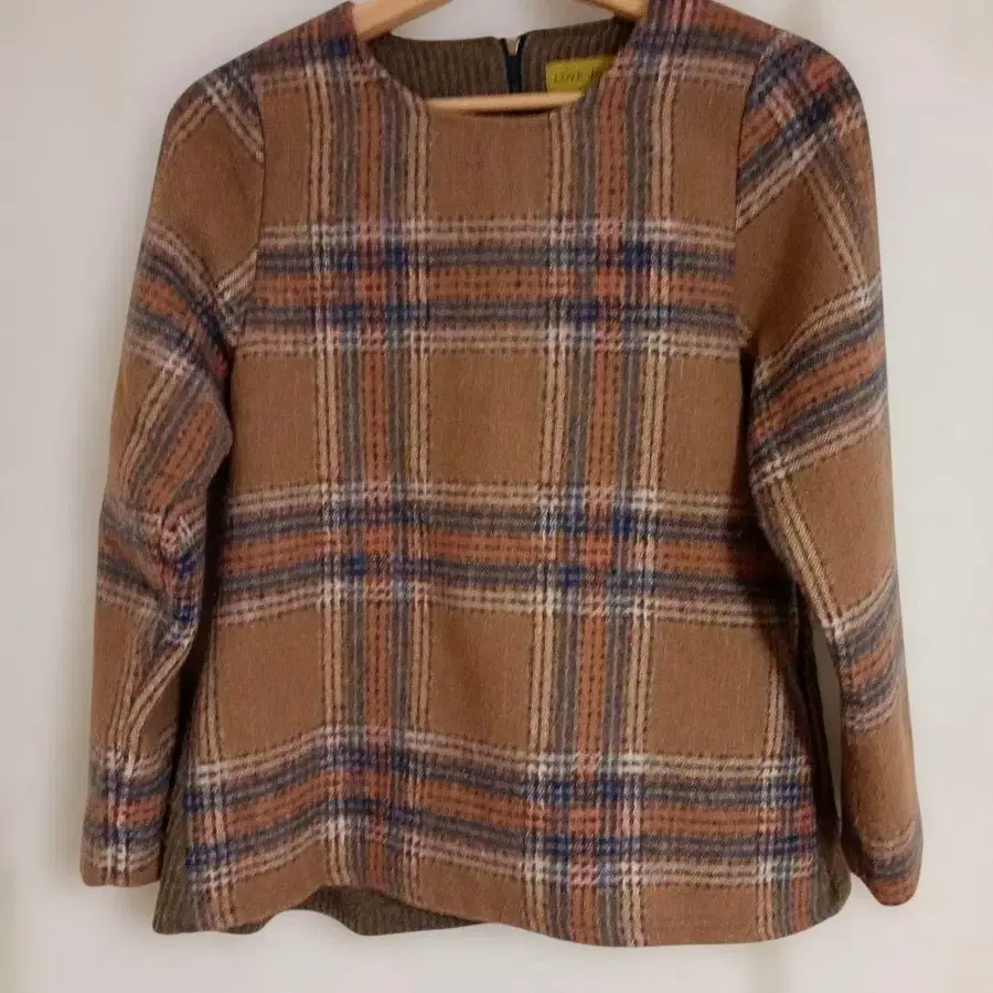 울 혼방 브라운 베이지 계열 체크 무늬 긴팔 상의, 뒷면 지퍼 포함. - 색상: 브라운 베이지 계열 체크 - 디자인: 긴팔, 체크 무늬 - 소재: 울 혼방 - 지퍼: 뒷면 지퍼 기장 60cm, 가슴 너비 48cm, 암홀 25cm 체크 무늬와 색감 (핑크와 스카이블루), 뒷면 지퍼, 뒷면 절개가 귀여워서 구매했지만 거의 착용하지 않고 자택 보관했습니다. 전면부와 소매의 원단은 신축성이 많지 않습니다. 스웨터라기보다는 약간 자켓 같은 착용감입니다. 방문해 주셔서 감사합니다.