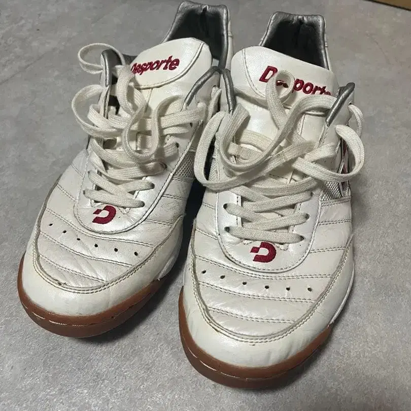통기성 있는 어퍼를 가진 Desporte의 화이트 신발.