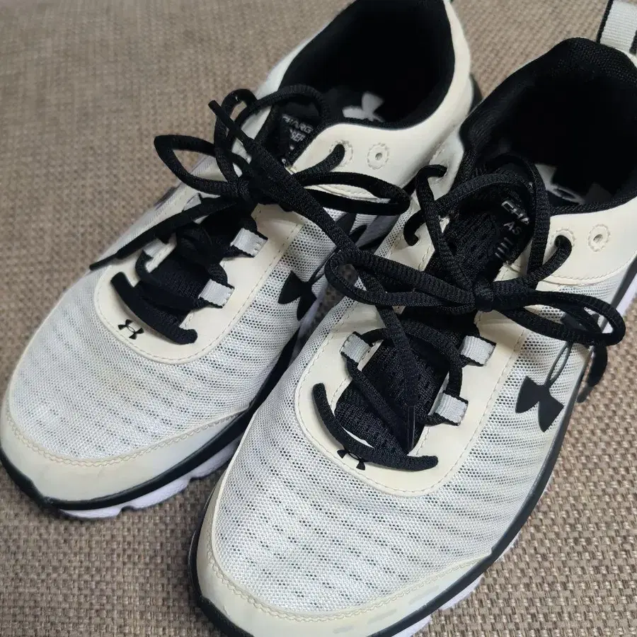 - 브랜드: Under Armour - 색상: 화이트/블랙 - 스타일: 스니커즈 - 디자인: 메쉬 소재 - 특징: 쿠션성 있는 밑창 중고품이므로 이해하시는 분만 구매해 주세요. 방문해 주셔서 감사합니다.